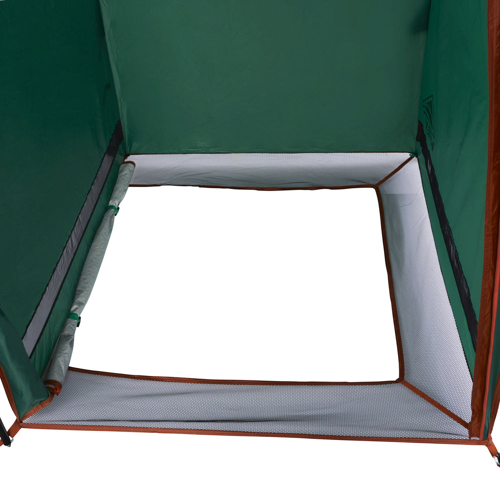 Stay organised with the large zippered door, side window, and multiple interior pockets that keep your essentials within reach. The roll-up floor with a built-in drain adds convenience, while the interior center hook can support a hanging shower bag of up to 5 gallons.