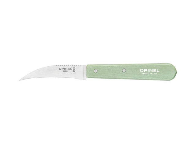 Indulge in the culinary artistry with the Opinel N°114 Vegetable Knife in Sage, a masterfully crafted kitchen essential from France that excels in precise cutting, cleaning, and slicing tasks. Elevate your cooking experience with this versatile tool that effortlessly handles delicate kitchen tasks, making intricate work seem like a breeze. The bird's beak blade, made from premium stainless steel and measuring 7cm in length, is expertly designed for seamless vegetable preparation, while the unique curved shape simplifies the process and the scraping back ensures a thorough clean.
