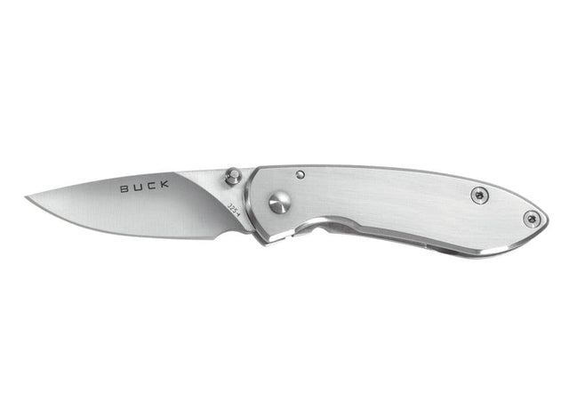 Elevate your daily essentials with the Buck 325 Colleague Knife, a contemporary and sophisticated pocket companion that blends style with functionality. Engineered with a reliable frame-lock system to ensure secure blade locking and a convenient one-handed opening mechanism, this knife is your perfect on-the-go partner. Its drop point 420HC stainless steel blade not only delivers exceptional edge retention but also stands the test of time, catering to a myriad of cutting tasks effortlessly. The brushed stainless steel handle not only offers a chic aesthetic but also guarantees a comfortable and secure grip for smooth handling.