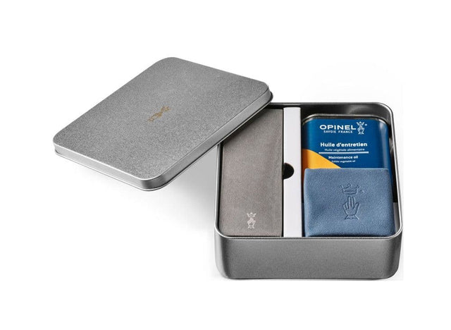 Indulge in the ultimate care for your knives with The Opinel Maintenance Kit, an exquisite collection of essential tools meticulously crafted to preserve the peak performance of your blades. Enclosed within a robust metal storage box, this all-encompassing maintenance kit is a true gem for knife aficionados.