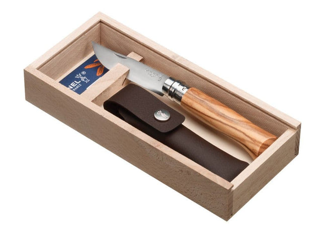 The Opinel N°08 Olive Classic Originals Knife with Sheath Gift Set