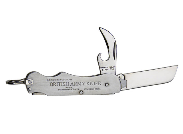 Originally developed in the late 1990s, this knife was a response to the MOD's requirement for the 2PCARMY knife to feature a safety locking blade. The heavy-duty sheepfoot blade on this knife utilises a back-locking mechanism, ensuring reliability and security in various situations. Additionally, the knife is equipped with a convenient can-opener tool, enhancing its versatility.