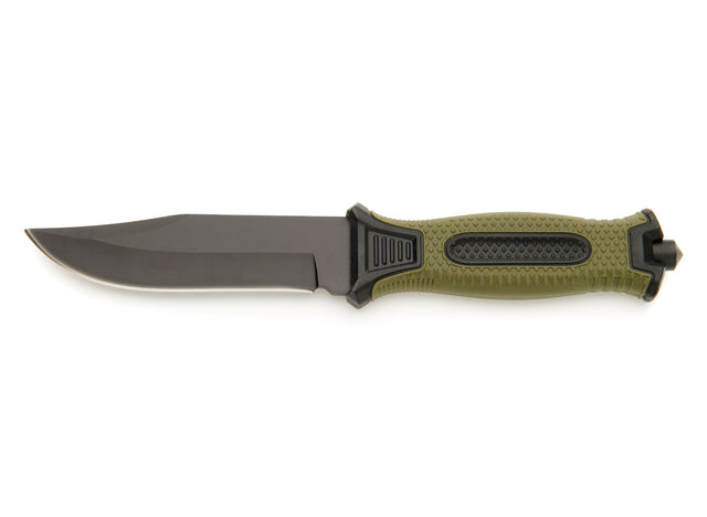 Equipped with a green and black rubberised textured handle, this knife offers a secure grip even in challenging conditions. Weighing only 177g, it is lightweight and easy to carry, making it an ideal choice for camping, hiking, or emergency situations.