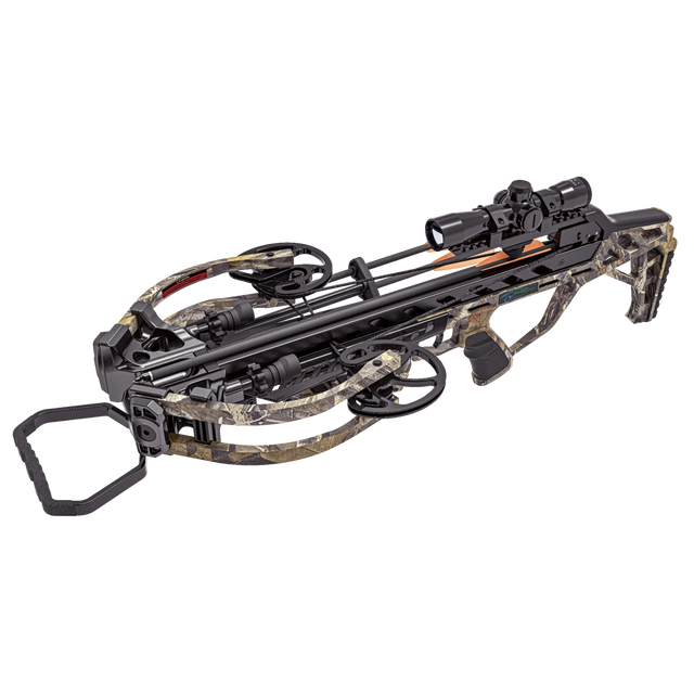 Customisation options are endless with Picatinny rails on both the top and bottom of the crossbow, enabling you to attach accessories such as a laser or a light. The package includes essential accessories like a 4x32 scope, sling, quiver, cocking string, and 4 carbon bolts, providing everything you need for an exceptional shooting experience with the MK-XB65FC in Forest Camo.