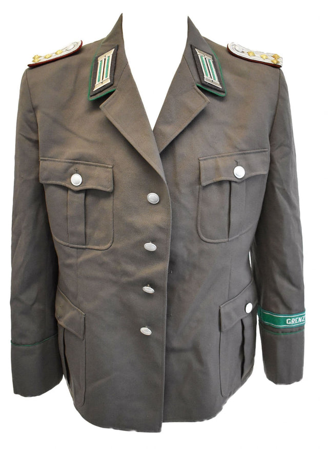 The East German Army Border Guard Grey Uniform Dress Jacket was originally used by the border troops of the German Democratic Republic. Offered in grade 1 condition, this jacket may show some small signs of wear but is still in a great condition and is ready to go. It features two breast pockets, two waist pockets and even an internal pocket with ample space to store all of your small essentials. It also includes an embroidery on the sleeve which says 'Grenztruppen Der DDR' which translates to GDR Border Troops. This is a unique and rare jacket which would make a great collectors piece!
