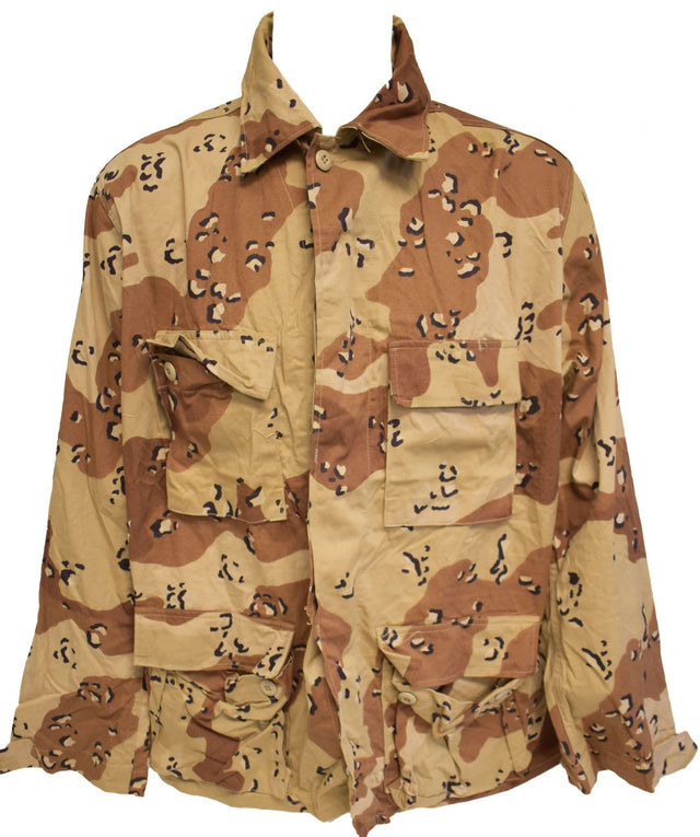 The US Army Chocolate Chip Desert Camouflage Shirt is a rare piece of surplus which is not often seen. Developed back in 1971, 'chocolate chip' is the nickname for the six colour desert camouflage issued to the US Army. These shirts are offered in grade 1 condition meaning they may show some small signs of wear but are still in a great condition and are ready to go. Each shirt includes four front pockets for storing outdoor essentials or small personal belongings, a button closure and button up adjustable cuffs. Made from cotton and nylon, these shirts are durable and as tough as they come.