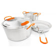 • Includes 3L pot, 2L pot, 9" fry pan, two strainer lids, mesh stuff sack