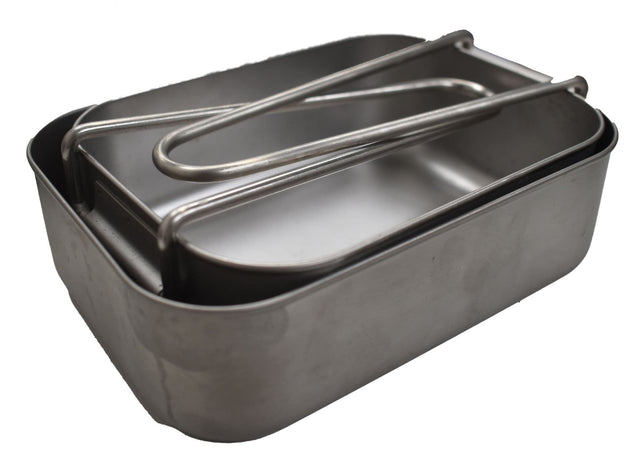 A must have when cooking outdoors, the Dutch Military Mess Tins - Pack Of 2 are perfect for camping, hiking, DofE and outdoor adventures. Originally used in the Dutch Military, these mess tins come as a handy pack of 2 and nest inside each other to save space in your pack. To save you even more space, these mess tins also come complete with folding handles which allow you to easily eat your delicious meals and further aid easy storage and transportation. Offered in grade 1 condition, these mess tins are made from stainless steel making them tough, durable and long lasting.