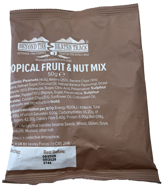 These are genuine British Army Ration Pack Fruit & Nut Mix - 50g packs.These pouches weigh 50g each, making them a great snack when out and about, or excellent for adding flavour to other meals. MRE's are a great long lasting food idea for bulk storage of your food preps or simply as a good nutritious snack when out and about.
