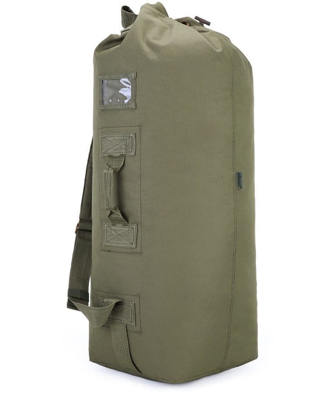 With a clear ID panel for easy identification and a generous 75L capacity, this kit bag is perfect for outdoor adventures, camping trips, or military use. The bag measures approximately 91cm x 52cm x 52cm and is made from tough 600D polyester for long-lasting performance.