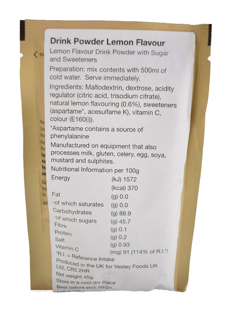 British Military Ration Pack Accessory - Lemon Fruit Flavour Drink Powder 45g