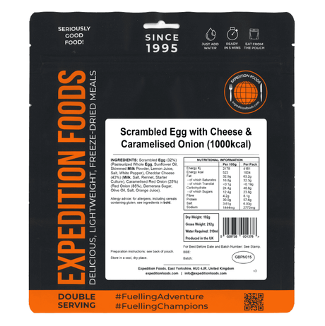 Expedition Foods Freeze Dried Meal Pouch - Scrambled Egg, Cheese & Caramelised Onion - Various Sizes