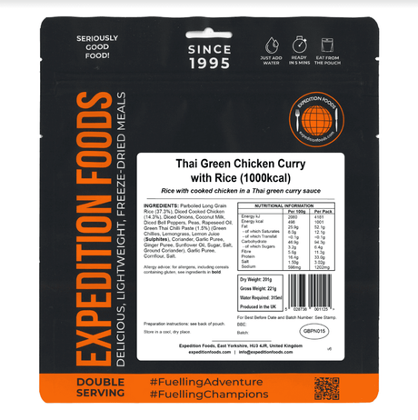 Expedition Foods Freeze Dried Meal Pouch - Thai Green Chicken Curry With Rice - Various Sizes
