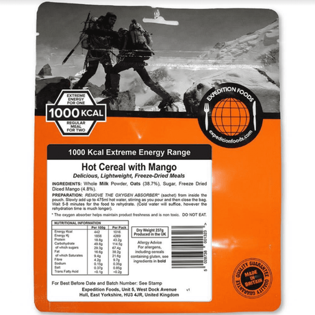 Expedition Foods Freeze Dried Meal Pouch - Hot Cereal With Mango - Various Sizes