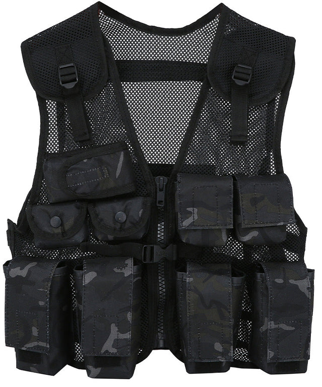 This kids assault vest features a total of nine practical pockets, providing ample storage for essentials. Adjustable straps on the shoulders, front, and sides allow for a customised fit, accommodating various body sizes with ease.