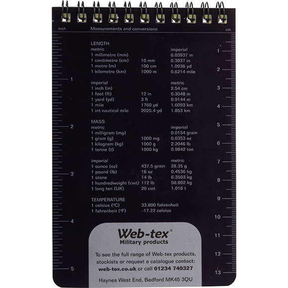 Introducing The Web-Tex Warrior Waterproof Notebook A6, a reliable companion for your outdoor adventures. This A6-sized notebook is designed to withstand the elements, featuring 50 tearproof grid-lined pages that fit perfectly into the Notepad Holder.